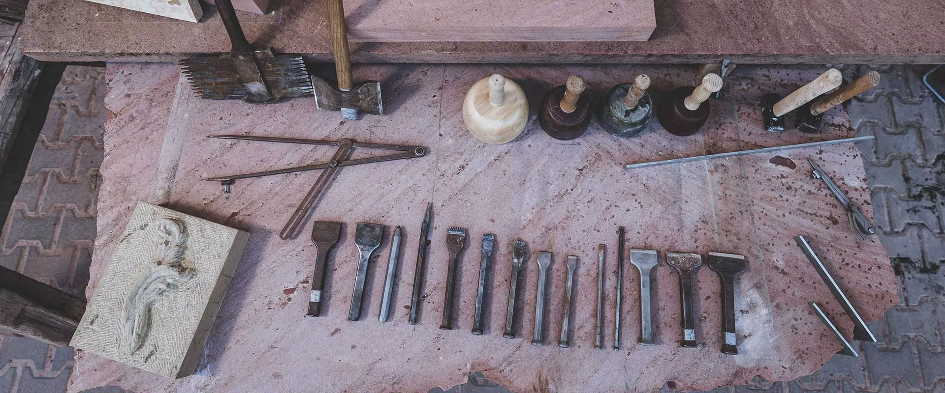 Wir legen großen Wert auf eine sorgfältige Auswahl hochwertiger Materialien wie Sandstein, Granit oder Marmor. In feinster Handarbeit geben wir jedem Werkstück seine einzigartige Form, unterstützen den Charakter des Steins und schaffen so langlebige, individuelle Lösungen.